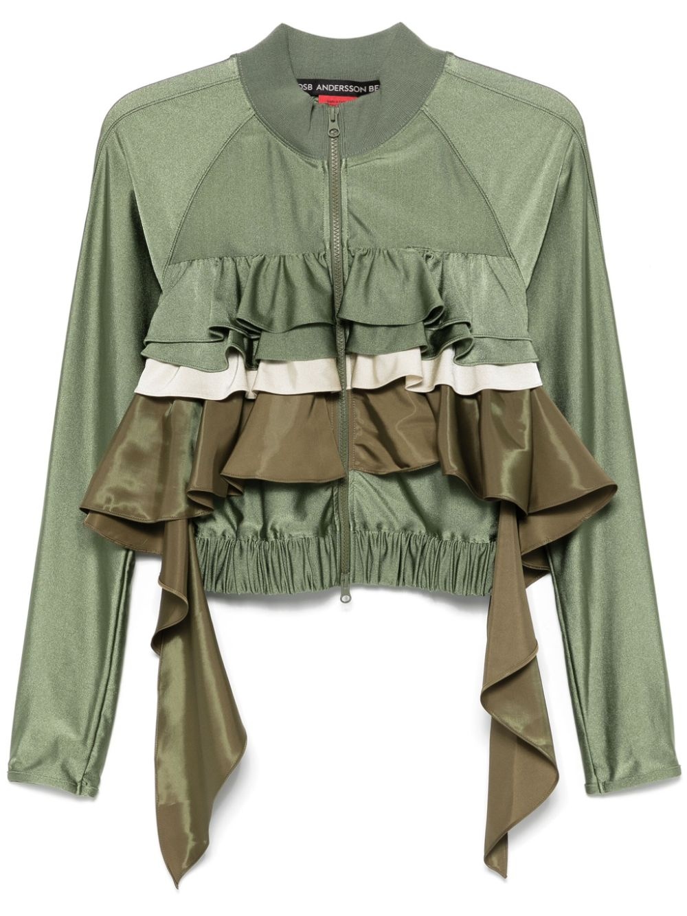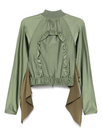 Riley jacket Highlights - Khaki - Technical jersey - High-shine finish - Front two-way zip fastening - Mock neck - Ruffled detailing - Long sleeves - Elasticated cuffs - Logo patch to the rear - Elasticated hem - Cropped - When buying this unisex item, keep in mind that it is graded in standard men's sizing. Imported Composition Polyester 100%, Nylon 80%, Polyurethane 20%