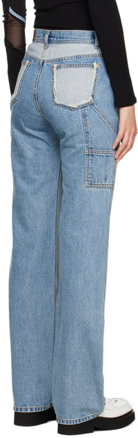 Non-stretch denim jeans. Fading and distressing throughout. · Paneled construction · Belt loops · Four-pocket styling · Zip-fly · Hammer loop and patch pockets at outseam · Logo-engraved silver-tone hardware · Contrast stitching in tan Available exclusively at SSENSE. Supplier color: Blue