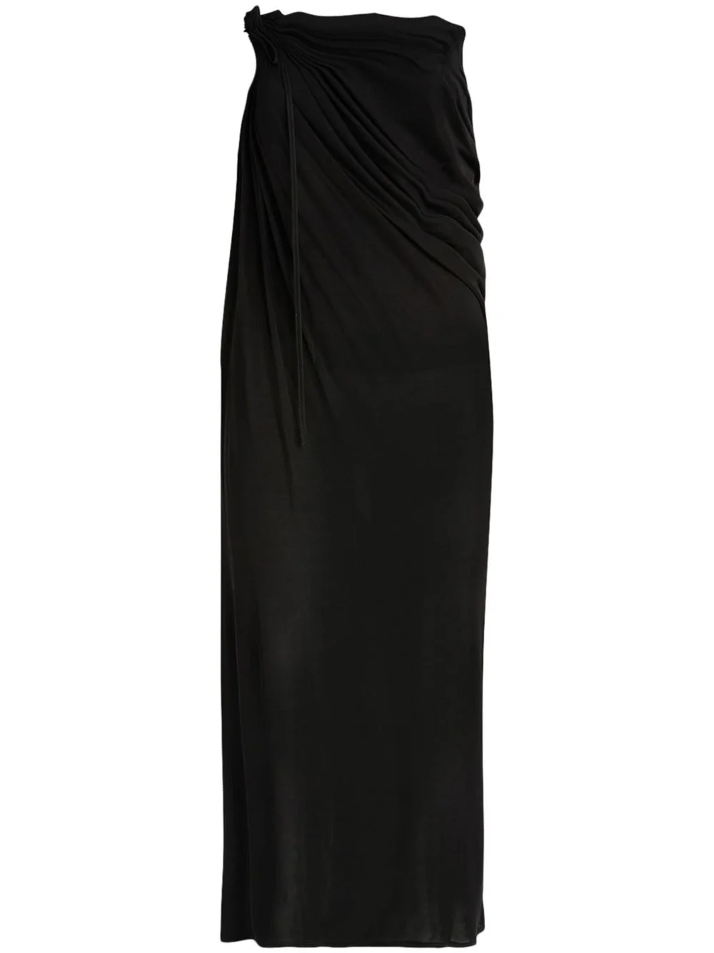 asymmetric skirt Highlights - Black - Elasticated drawstring waistband - Asymmetric design - Straight hem - Long length Made in Italy Composition Viscose 100% SIZE & FIT FittingInformation This maxi-length skirt is intended to be worn just below the waist Particularly long in length; consider your own measurements Made from a midweight non-stretch fabric, this piece offers minimal elasticity when worn