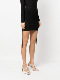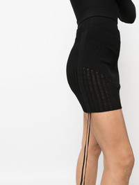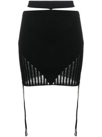 ribbed-knit mini skirt Highlights - Black - Stretch-design - Ribbed knit - High waist - Cut-out detailing - Side tie fastening Made in Italy Composition Viscose 80%, Polyester 10%, Polyamide 9%, Elastane 1% SIZE & FIT Model measurements Height 5 ft 11 in(1.8 m) Bust/Chest 33.07 in(84 cm) Hips 37.4 in(95 cm) Waist 25.19 in(64 cm) FittingInformation This piece fits true to size. We recommend you get your regular size Cut for a close fit Made with a mid-weight stretch fabric Washing instructions Hand Wash
