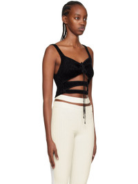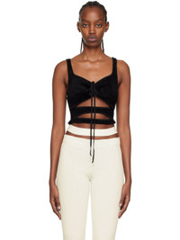 Rib knit stretch viscose-blend tank top. · Sweetheart neck · Self-tie closure · Cutouts at front Supplier color: Black 65% viscose, 35% polyamide. Made in Italy 222753F111008