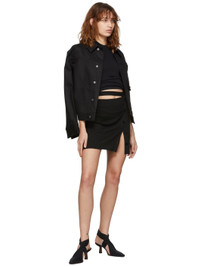 Rib knit stretch viscose-blend short skirt in black. · High-rise · Cut-out at waist · Button closure Supplier color: Black 80% viscose, 10% polyester, 9% polyamide, 1% elastane. Made in Italy 221753F090007