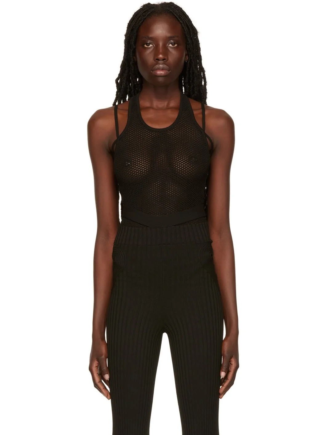 Open knit stretch viscose and polyester-blend bodysuit. · Crewneck · Press-stud fastening at bottom Supplier color: Black 80% viscose, 10% polyester, 9% polyamide, 1% elastane. Made in Italy 221753F358015