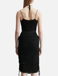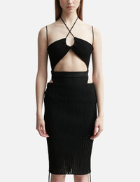 - ANDREĀDAMO - Ribbed Knit Sleeveless Bodysuit - Rib-knit construction - Crossed self-tie halterneck straps - Cut out details at front - Color: Black - Material: 80% Viscose, 10% Polyester, 9% Polyamide, 1% Elastane - See more Bodysuits and Clothing SIZING - Model wears size S - Model measures: Height 181cm, Chest 33”/84cm, Waist 24”/61cm, Hip 35”/90cm