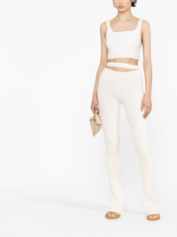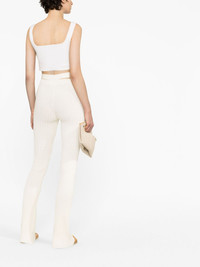 high-waisted cut-out detail trousers Inspired by art and design, Andreadamo has a disintctly creative design style. This is highlighted on this pair of trousers from Andreadamo which have a classic knitted construction alongside contemporary cut-out detailing. Highlights - Ivory white - High waist - Cut-out detailing - Knitted construction Made in Italy Composition Viscose 80%, Polyester 10%, Polyamide 9%, Elastane 1% SIZE & FIT Model measurements Height 5 ft 10 in(1.78 m) Bust/Chest 30.7 in(78 cm) Hips 34.64 in(88 cm) Waist 23.22 in(59 cm) FittingInformation Designed for a slim fit that sits just away from the body offering a close yet comfortable fit Made with a midweight knit, this piece offers some stretch This piece fits true to size – take your usual size Washing instructions Hand Wash