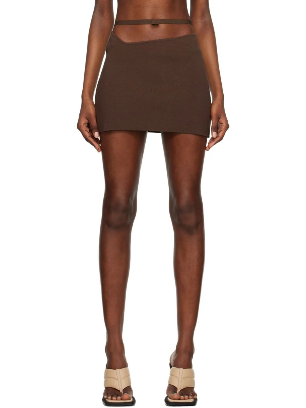 Rib knit stretch viscose-blend skirt. Cutout at waistband. Supplier color: Brown 80% viscose, 10% polyester, 9% polyamide, 1% elastane. Made in Italy 231753F090014