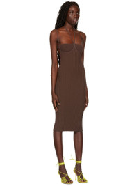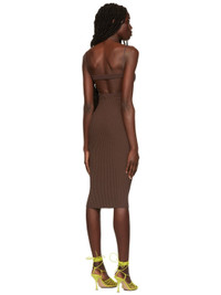 Rib knit stretch and viscose and polyester-blend dress. · Spaghetti shoulder straps · Halter strap at square neckline · Open knit panels at chest Supplier color: Brown 80% viscose, 10% polyester, 9% polyamide, 1% elastane. Made in Italy 221753F054004