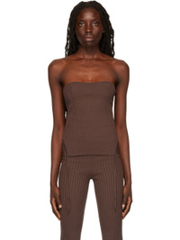 Rib knit stretch viscose and polyester-blend camisole. · Strapless construction · Self-tie fastening at vented side-seams Supplier color: Brown 80% viscose, 10% polyester, 9% polyamide, 1% elastane. Made in Italy 221753F110001