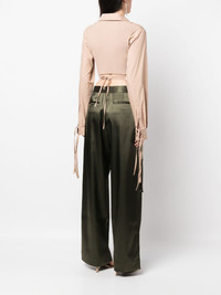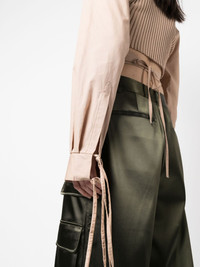 cropped wrap blouse Highlights - Blush beige - Cotton blend - Ribbed panelling - Wrap design - Spread collar - V-neck - Tied waist - Long sleeves - Tied cuffs - Cropped Made in Italy Composition Cotton 50%, Viscose 40%, Polyester 6%, Polyamide 3%, Elastane 1% SIZE & FIT Model measurements Height 5 ft 10 in(1.78 m) Bust/Chest 31.49 in(80 cm) Hips 36.22 in(92 cm) Waist 25.59 in(65 cm) FittingInformation Designed for a wraparound style that can be adjusted to your preference This piece fits true to size – take your usual size