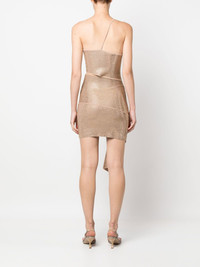 crystal-embellished asymmetric dress gold-tone crystal embellishment asymmetric design sleeveless Made in Italy Composition Viscose 88%, Polyester 12% SIZE & FIT Model measurements Height 5 ft 11 in(1.8 m) Bust/Chest 31.49 in(80 cm) Hips 36.41 in(92.5 cm) Waist 25.59 in(65 cm) FittingInformation This piece fits true to size. We recommend you get your regular size Cut for a close fit Made with a mid-weight fabric