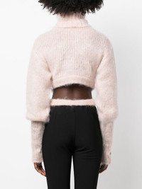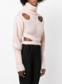 cut-out cropped jumper light pink mohair-wool blend knitted construction ribbed trim cut-out detailing roll neck long sleeves cropped Made in Italy Composition Kid Mohair 50%, Polyamide 32%, Wool 18% SIZE & FIT Model measurements Height 5 ft 10 in(1.77 m) Bust/Chest 29.92 in(76 cm) Hips 34.25 in(87 cm) Waist 23.62 in(60 cm) FittingInformation This piece fits true to size. We recommend you get your regular size Cut for a slim fit Made with a lightweight fabric