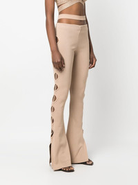 cut-out detail bootcut trousers beige stretch-design knitted construction cut-out detailing high-waisted elasticated waistband bootcut long length Made in Italy Composition Viscose 80%, Polyester 10%, Polyamide 9%, Spandex/Elastane 1% SIZE & FIT Model measurements Height 5 ft 11 in(1.8 m) Bust/Chest 31.49 in(80 cm) Hips 36.61 in(93 cm) Waist 24.4 in(62 cm) FittingInformation This piece fits true to size. We recommend you get your regular size Cut for a close fit Made with a mid-weight stretch fabric