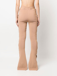 cut out-detail knitted flares beige knitted construction mid-rise cut-out detailing side slits flared long length Made in Italy Composition Viscose 80%, Polyester 10%, Polyamide 9%, Elastane 1% SIZE & FIT Model measurements Height 5 ft 11 in(1.8 m) Bust/Chest 31.49 in(80 cm) Hips 36.41 in(92.5 cm) Waist 25.59 in(65 cm) FittingInformation This piece fits true to size. We recommend you get your regular size Cut for a close fit Made with a mid-weight stretch fabric