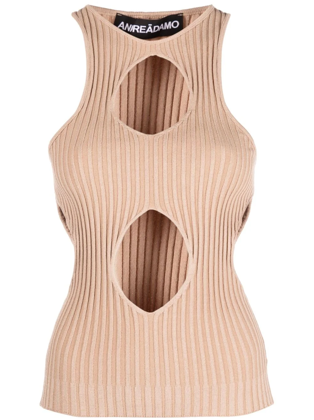 cut out-detail ribbed-knit top ANDREĀDAMO specialises in an artful approach to knitwear, enhancing classic silhouettes with unexpected details. This top from SS23 highlights the label’s style, it’s crafted with a beige-hued ribbed knit construction and elevated by four oval-shaped cut-outs to the front and sides. Highlights - Light beige - Ribbed knit - Cut-out detailing - Round neck - Sleeveless Made in Italy Composition Viscose 80%, Polyester 10%, Polyamide 9%, Elastane 1% SIZE & FIT Model measurements Height 5 ft 10 in(1.78 m) Bust/Chest 31.49 in(80 cm) Hips 35.03 in(89 cm) Waist 23.62 in(60 cm) FittingInformation Designed for a close fit throughout Made with a lightweight knit, this piece offers some stretch This piece fits true to size – take your usual size Washing instructions Hand Wash