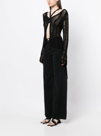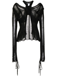 cut-out ribbed cardigan Highlights - Black - Knitted construction - Ribbed knit - Cut-out detailing - V-neck - Long sleeves - Box-pleat detail - Curved hem Made in Italy Composition Body: Viscose 88%, Polyester 12% SIZE & FIT Model measurements Height 5 ft 10 in(1.78 m) Bust/Chest 30.31 in(77 cm) Hips 34.64 in(88 cm) Waist 24.01 in(61 cm) FittingInformation Designed for a slim fit that sits just away from the body offering a close yet comfortable fit Constructed with additional length on the sleeve Made with a lightweight knit, this piece offers some stretch This piece fits true to size – take your usual size Washing instructions Hand Wash
