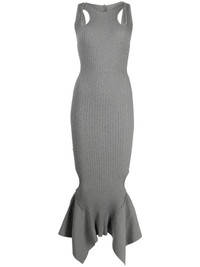 cut-out ribbed midi dress Highlights - Grey - Ribbed knit - Mermaid silhouette - Cut-out detailing - Overlapping panel - Round neck - Sleeveless - Asymmetric hem - Mid-length Made in Italy Composition Body: Viscose 80%, Polyester 10%, Polyamide 9%, Elastane 1% SIZE & FIT Model measurements Height 5 ft 10 in(1.77 m) Bust/Chest 31.49 in(80 cm) Hips 35.43 in(90 cm) Waist 25.19 in(64 cm) FittingInformation Designed for a close fit throughout Made from a midweight stretch fabric, this piece offers elasticity and flexibility when worn This piece fits close in all sizes – take your usual size Washing instructions Machine Wash