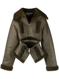 cut-out shearling-trim leather jacket