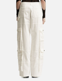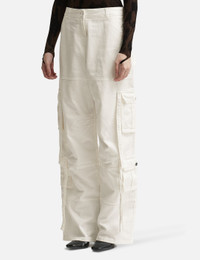 - ANDREĀDAMO - Drill Cargo Pants - Loose fit - Zip fly with button closure - Branded metal buttons - Darted knees - Strap detailing along outseam - Four pocket styling - Multiple flap pockets with button closure - Color: Ivory - Material: 97% Cotton, 3% Elastane - See more Pants and Clothing SIZING - Model wears size M - Model measures: Height 181cm, Chest 33”/84cm, Waist 24”/61cm, Hip 35”/90cm