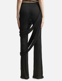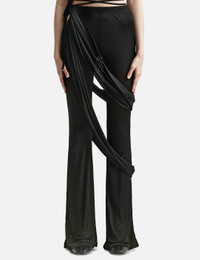 - ANDREĀDAMO - Jersey Flare Pants - High waist - Wrap design - Cut-out detailing - Side tie-fastening - Slightly flared leg - Color: Black - Material: 100% Viscose - See more Pants and Clothing SIZING - Model wears size S - Model measures: Height 181cm, Chest 33”/84cm, Waist 24”/61cm, Hip 35”/90cm