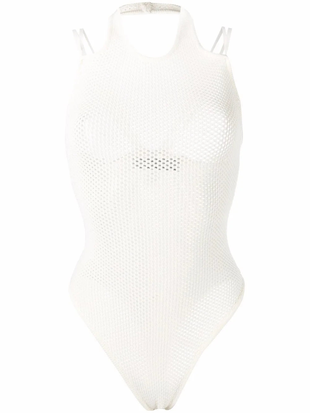mesh panelled swimsuit white halterneck mesh panelling stretch-design thin shoulder straps slip-on style Be mindful to try on swimwear over your own garments. Made in Italy Composition Viscose 80%, Polyester 10%, Polyamide 9%, Spandex/Elastane 1% Washing instructions Machine Wash