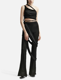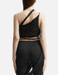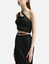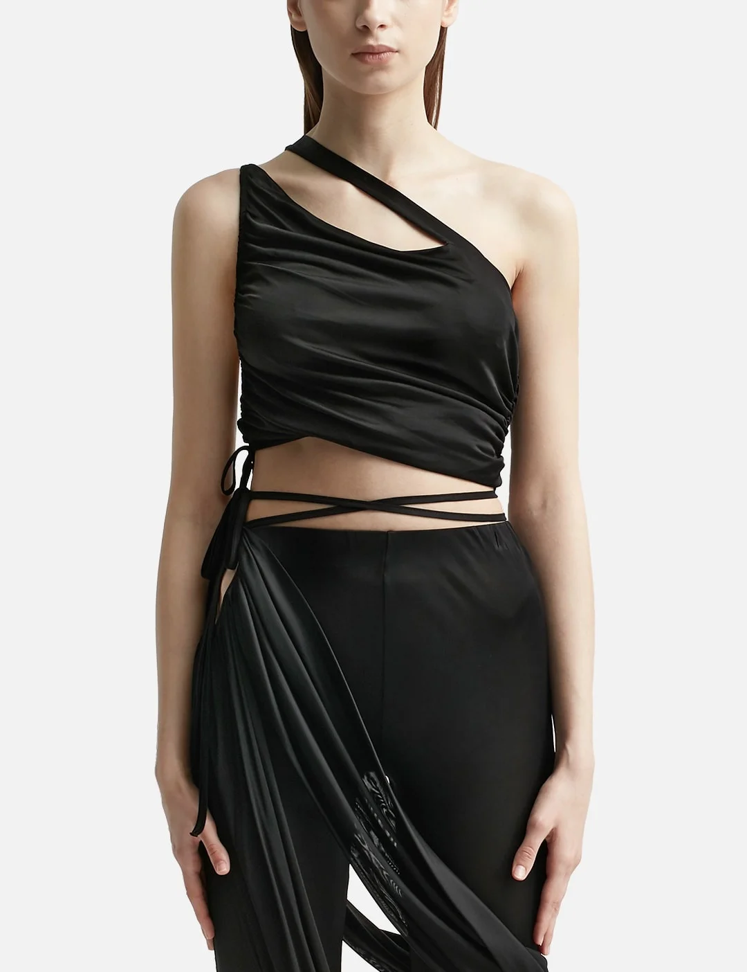- ANDREĀDAMO - Mono Strap Gathered Tank Top - Asymmetric design - Side tie-fastening - Gathered detailing - Asymmetric detailing to the neckline, shoulder straps and hem - Color: Black - Material: 100% Viscose - See more Tops and Clothing SIZING - Model wears size S - Model measures: Height 181cm, Chest 33”/84cm, Waist 24”/61cm, Hip 35”/90cm
