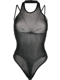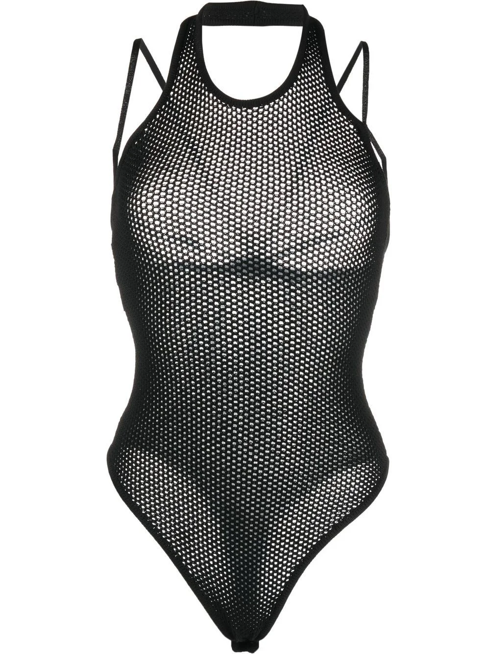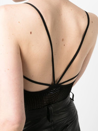 open-knit cross-straps tank top black open knit scoop neck crossover shoulder straps straight hem Made in Italy Composition Viscose 80%, Polyester 10%, Polyamide 9%, Spandex/Elastane 1% SIZE & FIT Model measurements Height 5 ft 10 in(1.78 m) Bust/Chest 31.49 in(80 cm) Hips 36.22 in(92 cm) Waist 25.59 in(65 cm) FittingInformation This piece fits true to size. We recommend you get your regular size Cut for a close fit Made with a mid-weight stretch fabric