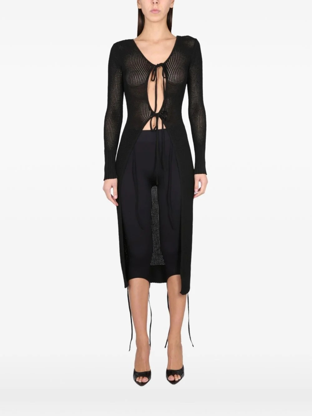 perforated long cardigan Highlights - Black - Cut-out detail - Tie detail - Long sleeves - Perforated design Imported Composition Fabric 100%