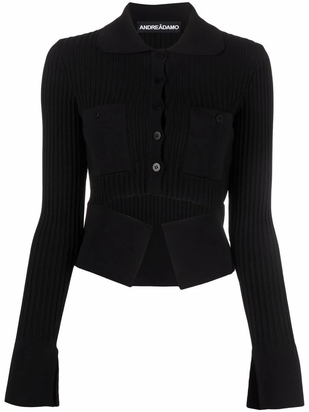 ribbed buttoned-up knitted top Italian designer Andre Adamo created his eponymous label in 2020. Made from a ribbed-knit fabric, this collared top has a cropped length and a signature strap detail. Made in Italy Composition Viscose 80%, Polyester 10%, Polyamide 9%, Spandex/Elastane 1% SIZE & FIT Model measurements Height 5 ft 10 in(1.78 m) Bust/Chest 29.52 in(75 cm) Hips 35.03 in(89 cm) Waist 22.83 in(58 cm) FittingInformation This piece fits true to size. We recommend you get your regular size Cut for a slim fit Made with a mid-weight stretch fabric