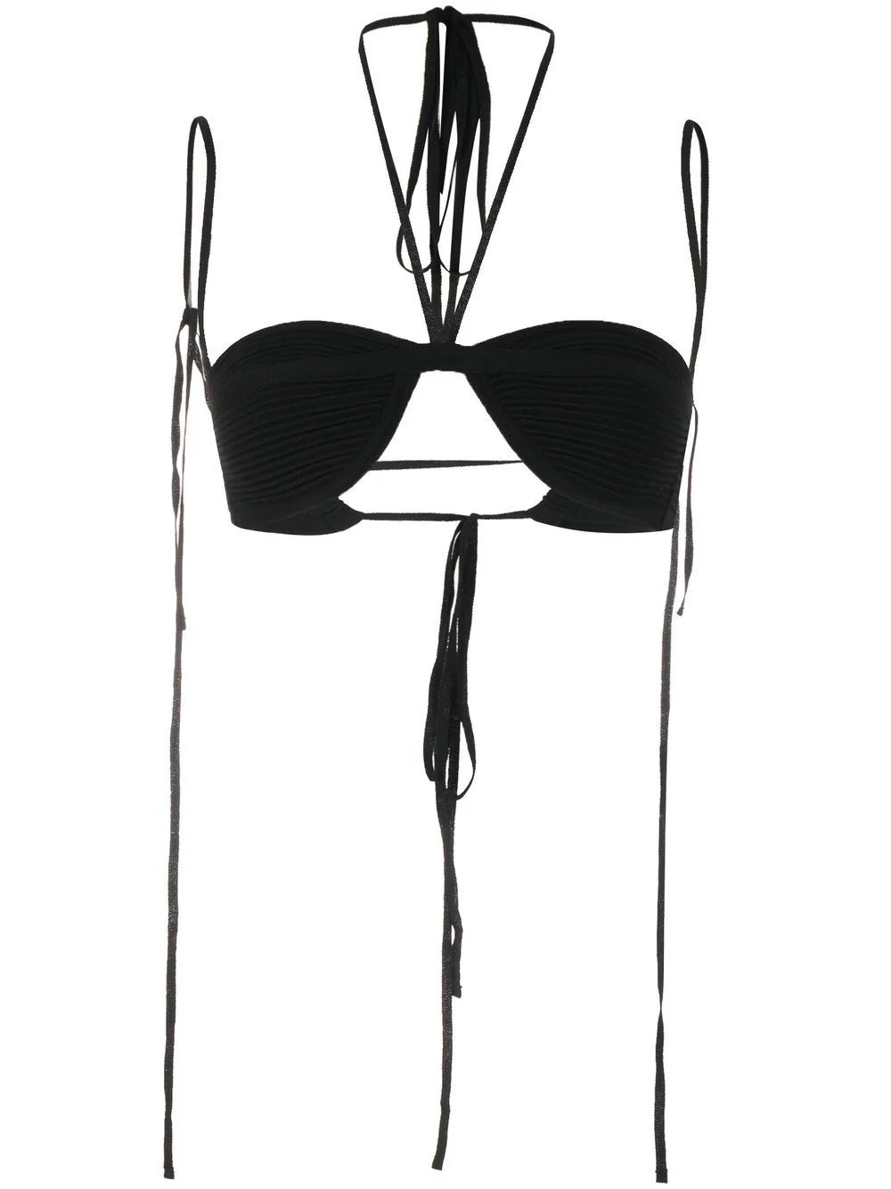 ribbed-detail top black stretch-design ribbed detailing halterneck tie fastening spaghetti straps rear tie fastening Made in Italy Composition Viscose 80%, Polyester 10%, Polyamide 9%, Elastane 1% SIZE & FIT Model measurements Height 5 ft 9 in(1.76 m) Bust/Chest 33.07 in(84 cm) Hips 38.58 in(98 cm) Waist 24.8 in(63 cm) FittingInformation This piece fits true to size. We recommend you get your regular size Cut for a slim fit Made with a mid-weight stretch fabric