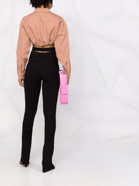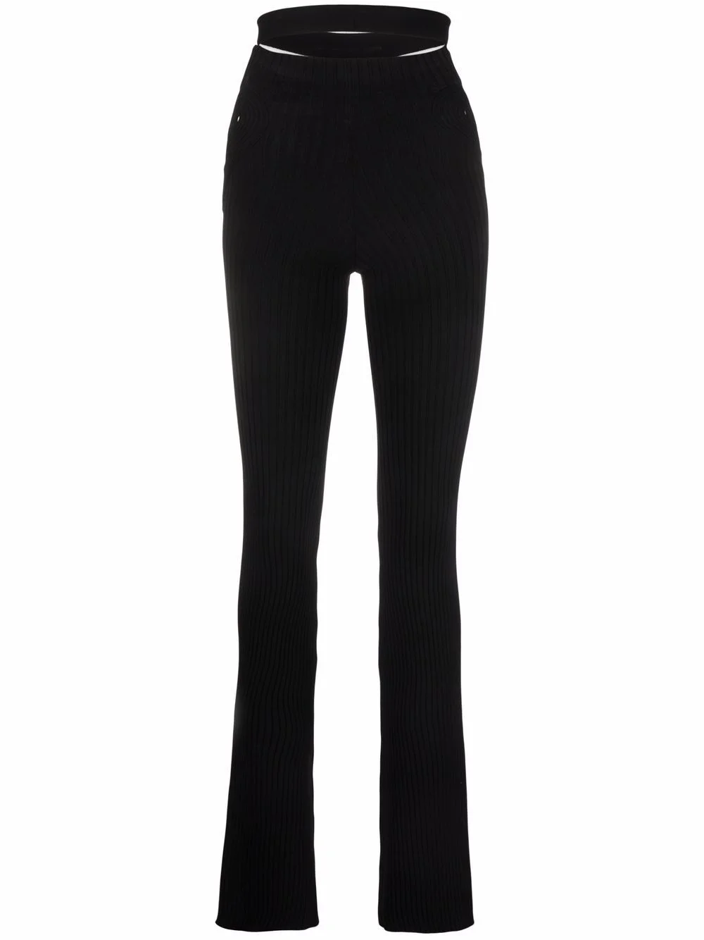 ribbed-knit bootcut trousers Made from black stretch fabric, these high-waisted bootcut trousers from ANDREADAMO feature the brand's signature strap detailing. Made in Italy Composition Viscose 80%, Polyester 10%, Polyamide 9%, Spandex/Elastane 1% SIZE & FIT Model measurements Height 5 ft 10 in(1.77 m) Bust/Chest 31.49 in(80 cm) Hips 36.22 in(92 cm) Waist 22.44 in(57 cm) FittingInformation This piece fits true to size. We recommend you get your regular size Designed to be fitted at the waist and through the thigh, loose from the knee Made with a mid-weight stretch fabric