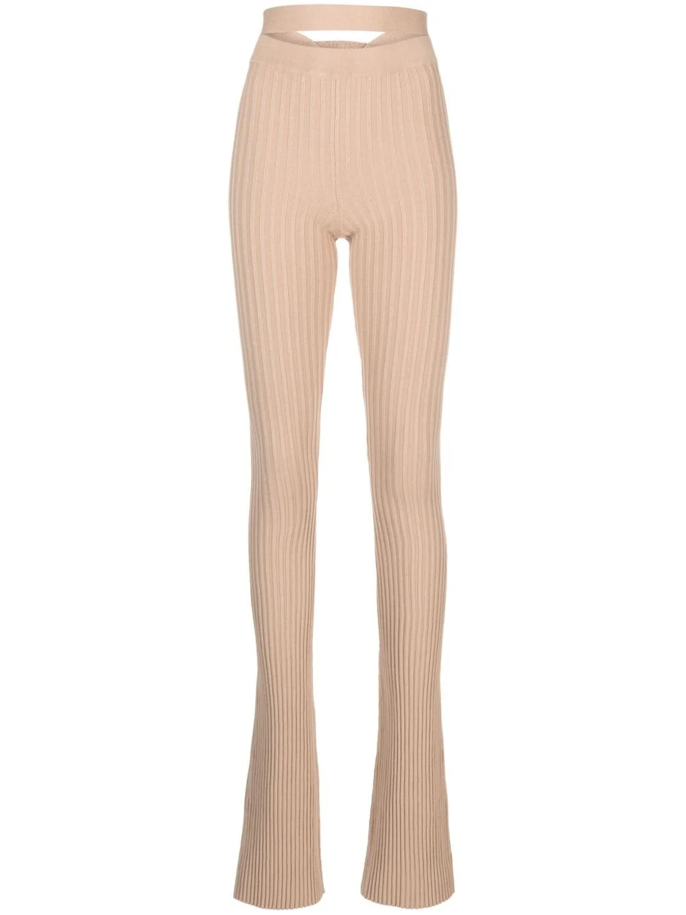 ribbed-knit flared trousers Highlights - Almond beige - Stretch-design - Ribbed knit - High waist - Floor-length Made in Italy Composition Viscose 80%, Polyester 10%, Polyamide 9%, Elastane 1% SIZE & FIT Model measurements Height 5 ft 10 in(1.77 m) Bust/Chest 29.92 in(76 cm) Hips 34.25 in(87 cm) Waist 23.62 in(60 cm) FittingInformation Designed for a close fit throughout The elasticated waist allows for a comfortable fit Made with a midweight knit, this piece offers some stretch This piece fits true to size – take your usual size Washing instructions Machine Wash