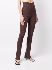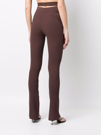 ribbed-knit flared trousers brown ribbed knit flared slim cut cut-out detailing high-waisted Made in Italy Composition Viscose 80%, Polyester 10%, Polyamide 9%, Elastane 1% SIZE & FIT Model measurements Height 5 ft 10 in(1.78 m) Bust/Chest 33.07 in(84 cm) Hips 35.82 in(91 cm) Waist 26.96 in(68.5 cm) FittingInformation This piece fits true to size. We recommend you get your regular size Cut for a close fit Made with a mid-weight stretch fabric Washing instructions Machine Wash