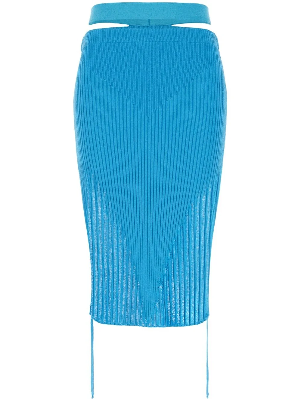 ribbed knit pencil skirt Highlights - Blue - Ribbed knit - Elasticated waistband - Pencil design - Cut-out detailing Made in Italy Composition Viscose 80%, Polyester 10%, Nylon 9%, Elastane 1% SIZE & FIT FittingInformation The tie fastening gives an adaptable and personalised fit Made with a midweight knit, this piece offers some stretch Washing instructions Read Manufacturer Guidelines
