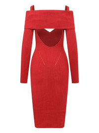 ribbed midi dress Highlights - Blood red - Cut-out detailing - Long sleeves - Off-shoulder - Open back Made in Italy Composition Viscose 80%, Polyester 10%, Polyamide 9%, Elastane 1% Washing instructions Read Manufacturer Guidelines