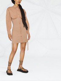 ribbed mini shirt dress nude brown mix-material design ribbed detailing side tie fastening front button fastening classic collar long sleeves buttoned cuffs straight hem thigh-high Made in Italy Composition Cotton 40%, Viscose 40%, Polyester 10%, Polyamide 9%, Spandex/Elastane 1% SIZE & FIT Model measurements Height 5 ft 10 in(1.78 m) Bust/Chest 30.31 in(77 cm) Hips 36.61 in(93 cm) Waist 24.8 in(63 cm) FittingInformation This piece fits true to size. We recommend you get your regular size Cut for a slim fit Made with a mid-weight stretch fabric