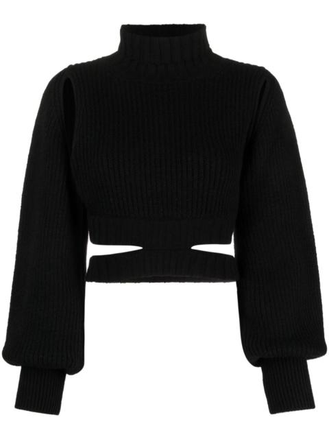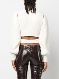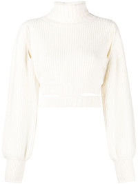 roll-neck cropped knit jumper Highlights - Ivory white - Stretch-design - Fisherman's knit - Cut-out detailing - Roll neck - Bishop sleeves - Ribbed cuffs and hem - Cropped Made in Italy Composition Acrylic 48%, Virgin Wool 48%, Elastane 4% SIZE & FIT Model measurements Height 5 ft 10 in(1.77 m) Bust/Chest 31.88 in(81 cm) Hips 36.22 in(92 cm) Waist 24.01 in(61 cm) FittingInformation Designed for a slim fit that sits just away from the body offering a close yet comfortable fit Made with a midweight knit, this piece offers some stretch This piece fits true to size – take your usual size