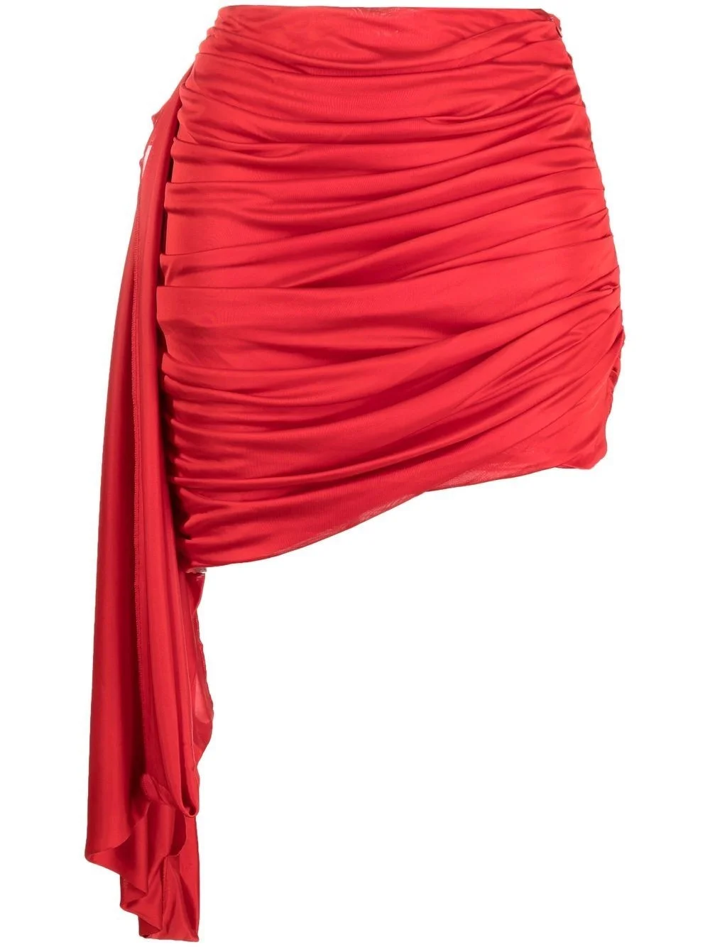 ruched asymmetric bodycon skirt bright red stretch-design ruched detailing draped detailing asymmetric design above-knee length Made in Italy Composition Viscose 100% SIZE & FIT Model measurements Height 5 ft 11 in(1.8 m) Bust/Chest 31.49 in(80 cm) Hips 35.82 in(91 cm) Waist 24.8 in(63 cm) FittingInformation This piece fits true to size. We recommend you get your regular size Cut for a close fit Made with a mid-weight stretch fabric