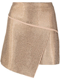 crystal-embellished asymmetric wrap skirt beige stud embellishment knitted construction wrap design asymmetric hem Made in Italy Composition Viscose 44%, glass 43%, Polyester 6%, Other Materials 4%, Aluminium 3% SIZE & FIT Model measurements Height 5 ft 10 in(1.78 m) Bust/Chest 33.07 in(84 cm) Hips 35.82 in(91 cm) Waist 26.96 in(68.5 cm) FittingInformation This piece fits true to size. We recommend you get your regular size Designed to be fitted at the waist and hips, loose over the leg Made with a mid-weight fabric