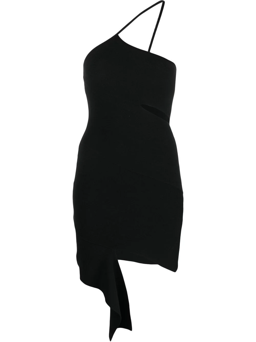 asymmetric bodycon mini dress black stretch-design single shoulder strap asymmetric design cut-out detailing Made in Italy Composition Viscose 80%, Polyester 10%, Polyamide 9%, Elastane 1% SIZE & FIT Model measurements Height 5 ft 10 in(1.77 m) Bust/Chest 32.28 in(82 cm) Hips 35.03 in(89 cm) Waist 25.19 in(64 cm) FittingInformation This piece fits true to size. We recommend you get your regular size Cut for a close fit Made with a mid-weight fabric