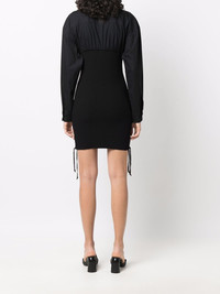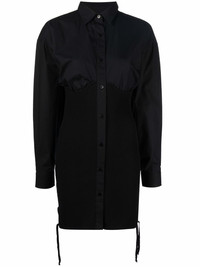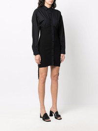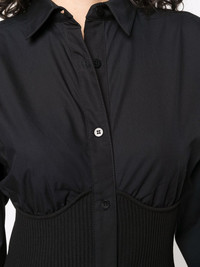 structured shirt dress black ribbed panelling classic collar front button fastening long sleeves corset style drawstring hem above-knee length Made in Italy Composition Cotton 40%, Viscose 40%, Polyester 10%, Polyamide 9%, Spandex/Elastane 1% SIZE & FIT Model measurements Height 5 ft 10 in(1.79 m) Bust/Chest 33.07 in(84 cm) Hips 35.82 in(91 cm) Waist 24.01 in(61 cm) FittingInformation This piece fits true to size. We recommend you get your regular size Cut for a slim fit Made with a mid-weight fabric
