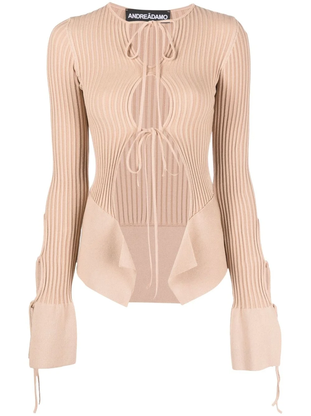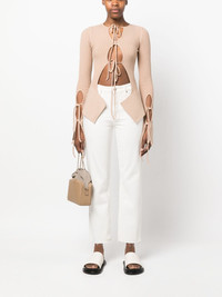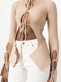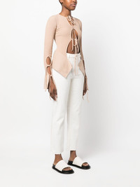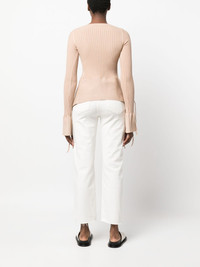 cut-out ribbed top blush beige ribbed knit cut-out detailing crossover neck extra-long sleeves tied cuffs high-low hem Made in Italy Composition Viscose 80%, Polyester 10%, Polyamide 9%, Elastane 1% SIZE & FIT Model measurements Height 5 ft 9 in(1.76 m) Bust/Chest 33.07 in(84 cm) Hips 38.58 in(98 cm) Waist 24.8 in(63 cm)
