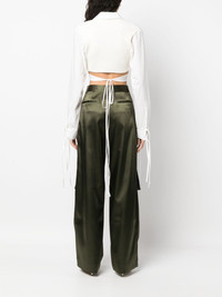 tie-waist blouse Highlights - Ivory white - Cotton blend - Classic collar - V-neck - Tied waist - Rear tie fastening - Long sleeves - Tied cuffs - Cropped Made in Italy Composition Cotton 50%, Viscose 40%, Polyester 6%, Polyamide 3%, Spandex/Elastane 1% SIZE & FIT Model measurements Height 5 ft 10 in(1.79 m) Bust/Chest 33.07 in(84 cm) Hips 35.82 in(91 cm) Waist 24.01 in(61 cm) FittingInformation Designed for a slim fit that sits just away from the body offering a close yet comfortable fit The tie fastening gives an adaptable and personalised fit Made from a midweight stretch fabric, this piece offers elasticity and flexibility when worn This piece fits true to size – take your usual size