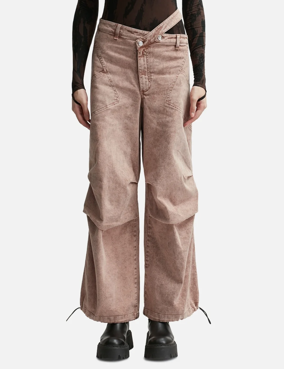 - ANDREĀDAMO - Washed Denim Cargo Pants - Straight-leg - Loose fit over the leg - Zip fly with button closure - Cut-out detailing above waist - Darted knees - Two front pockets - Two rear pockets - Washed finish - Drawcord at hem for customizable fit at ankle - Color: Washed Nude - Material: 97% Cotton, 3% Elastane - See more Pants and Clothing SIZING - Model wears size M - Model measures: Height 181cm, Chest 33”/84cm, Waist 24”/61cm, Hip 35”/90cm