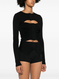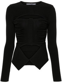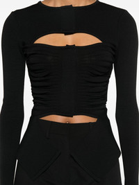 Xray cut-out ruched cardigan Highlights - Black - Ribbed knit - Round neck - Long sleeves - Cut-out detailing to the chest and hem - Ruched detailing to the front - Asymmetric hem - Concealed front zip and press-stud fastening Made in Italy Composition Viscose 65%, Polyamide 30%, Elastane 5% SIZE & FIT Model measurements Height 5 ft 10 in(1.77 m) Bust/Chest 33.07 in(84 cm) Hips 37 in(94 cm) Waist 24.8 in(63 cm) FittingInformation Designed for a close fit throughout Made with a midweight knit, this piece offers some stretch This piece fits true to size – take your usual size Washing instructions Machine Wash