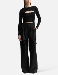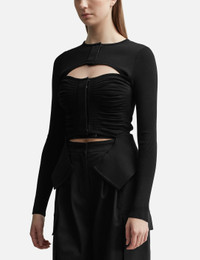 - ANDREĀDAMO - Xray Knit Cardigan With Zip - Stretch knit jacquard cardigan - Front zip closure with snap button - Cut out detail - Long sleeves - Thumbhole cuffs - Made In Italy - Color: Black - Material: 65% Viscose 30% Polyamide 5% Elast - See more Knitwear and Clothing SIZING - Model wears size S - Model measures: Height 181cm, Chest 33”/84cm, Waist 24”/61cm, Hip 35”/90cm
