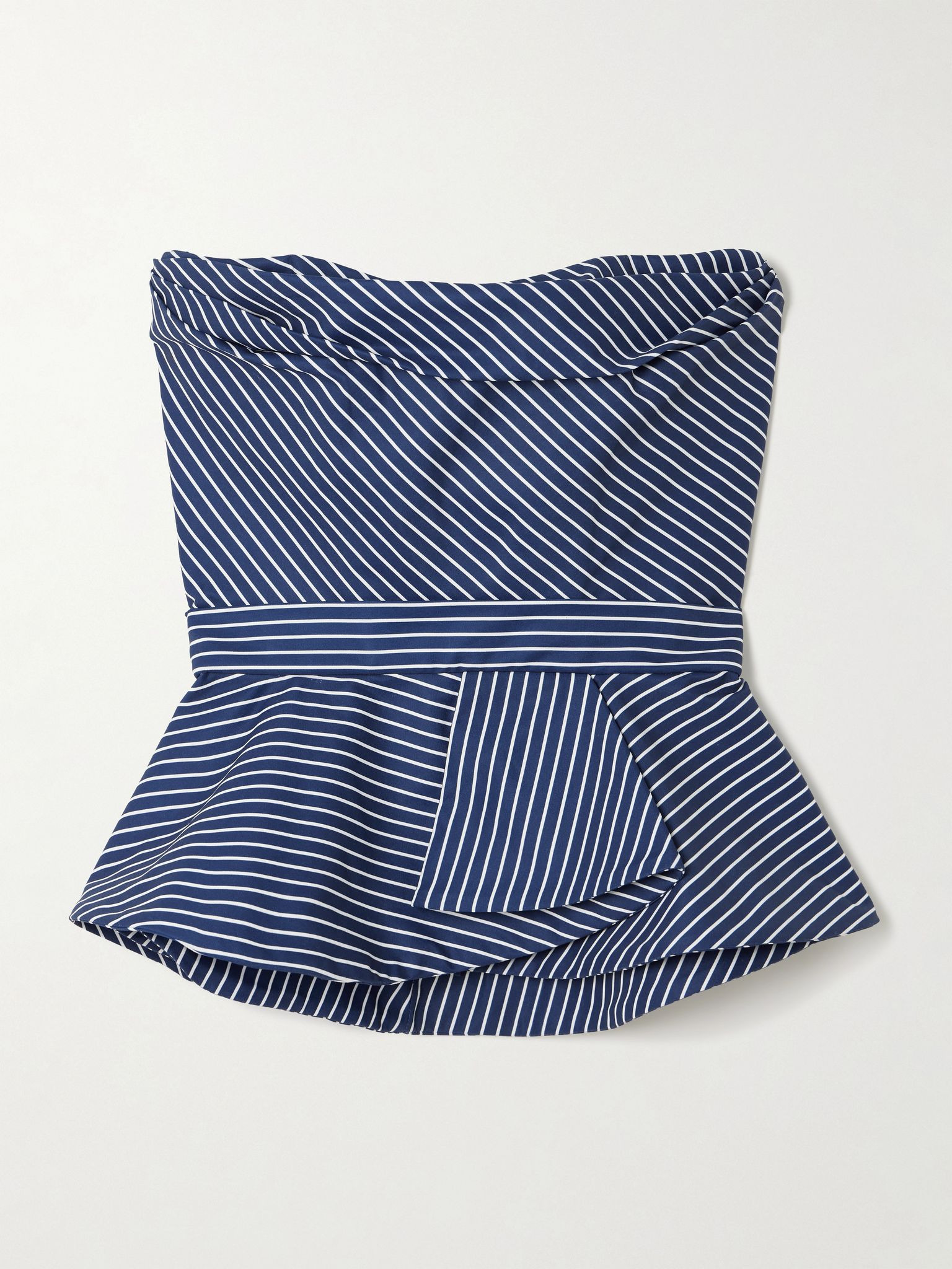 Alborada strapless striped stretch cotton-twill peplum top Navy