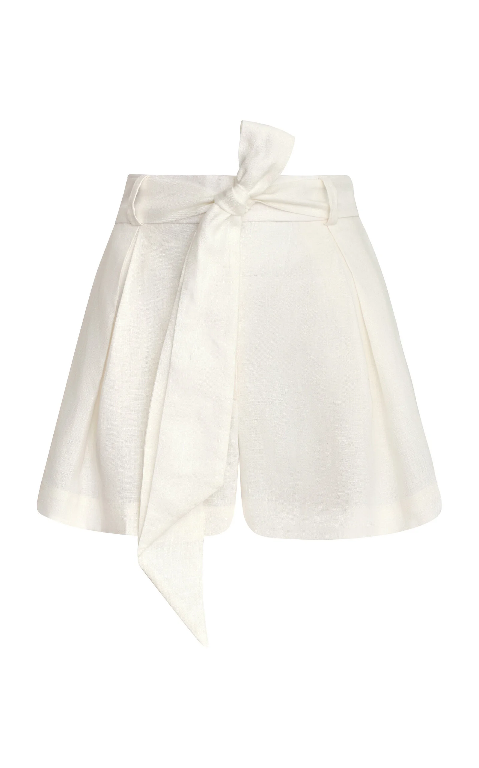 PRODUCT DETAILS - High-waisted, sash belt, pleated, mini inseam - Concealed zip fastening - Lined - Composition: 100% Linen - Color: off-white - Dry clean only - Pre-Fall '25