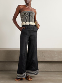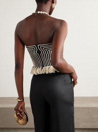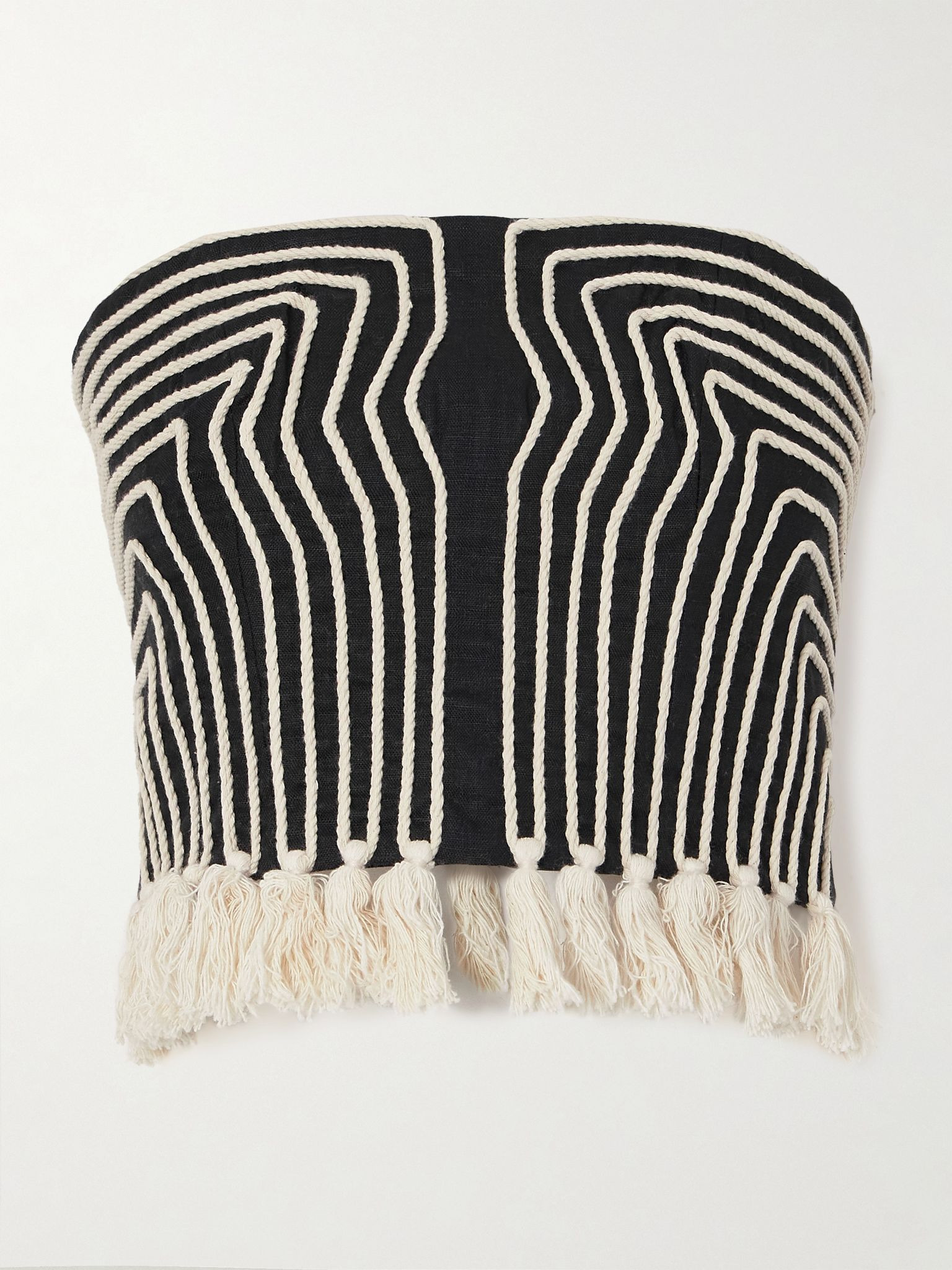 Escuchas cropped strapless tasseled embroidered linen top Black