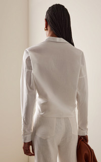 The Colombian designer draws inspiration from the lush, green landscapes of his home country’s tropical paradise. His goal? To mirror the vibrancy of the natural world through carefully designed pieces made from high-quality fabrics. The shirt is made of cotton that features a ribbon-tie detailing. PRODUCT DETAILS - Pre-Fall '25 - Button fastening through front - Composition: 100% Cotton - Color: off-white - Dry clean only - Imported SIZE & FIT - Our model is wearing a size US 2 - Model is 5'10" with a 30" bust, 24" waist, and 34" hip
