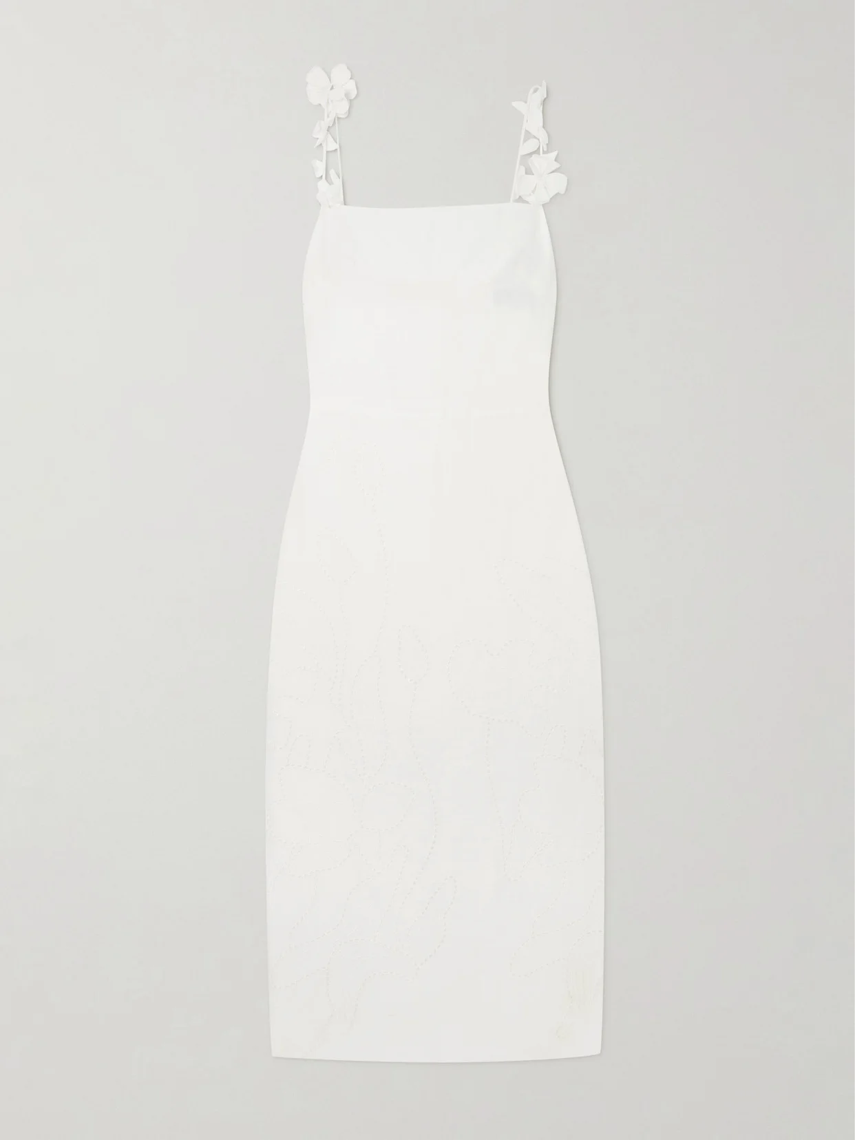 In Andres Otalora's world, "each stitch is a note in a symphony of elegance". Ringing true to this design philosophy, this 'Petalos' dress is made from airy linen and intricately embroidered throughout the midi skirt. It has a decolletage-framing square neckline and delicate floral-appliqued straps.